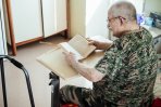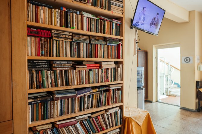 In our home, we are proud of a wide range of literature and periodicals in various languages. Books are available in Latvian, Russian, English, and German. Also newspapers are available in different languages. Audio books are also available, provided in cooperation with the Liepaja Society of the Blind.